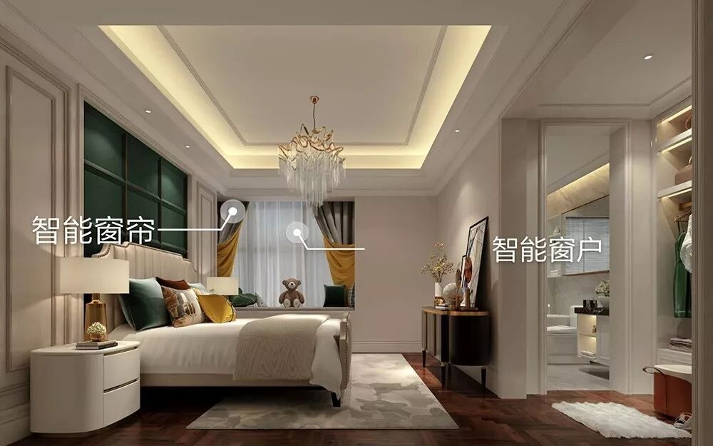通过手机APP或手拉窗帘自动启动智能化功能,根据室外天气情况自动开启或关闭窗户,清晨自然光照下自动拉开窗帘,晚上回家定时关闭窗帘,保护居家隐私。